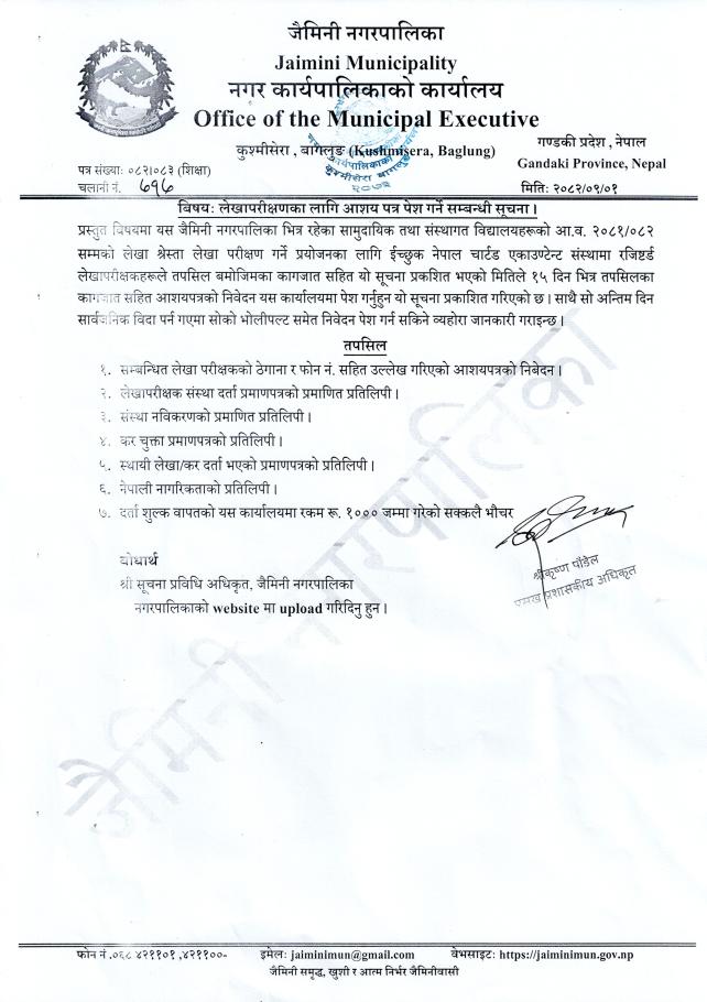 » लेखापरीक्षणका लागि आशय पत्र पेश गर्ने सम्बन्धी सूचना।