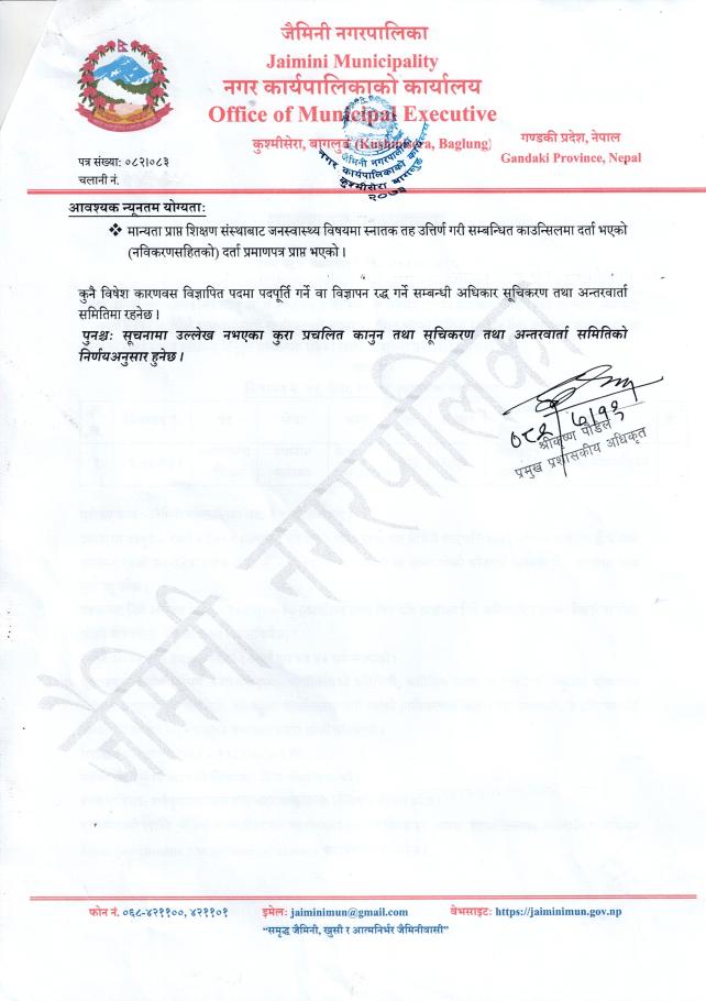 जैमिनी नगरपालिकाको आगामी आ.व. ०७५।०७६ का लागी निर्धारण गरिएको कर तथा दस्तुरहरुको दर।