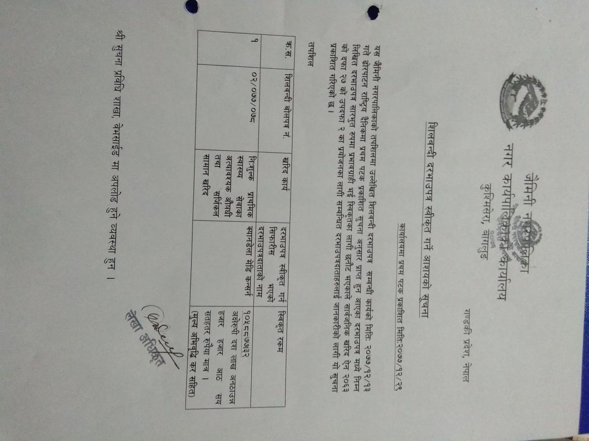 बोलपत्र स्विकृत गर्ने आशयको सूचना !!!