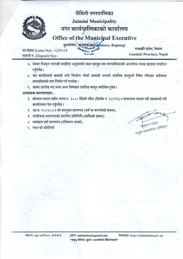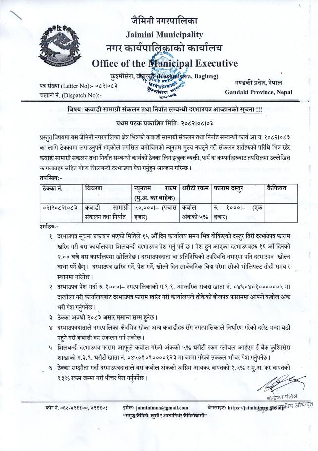 कवाडी सामाग्री संकलन तथा निर्यात सम्बन्धी दरभाउपत्र आव्हानको सूचना !