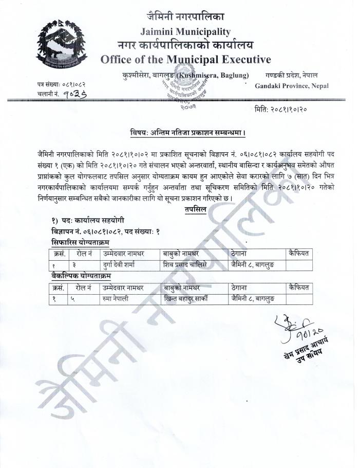 कार्यालय सहयोगिको अन्तिम नतिजा प्रकाशन सम्बन्धमा।