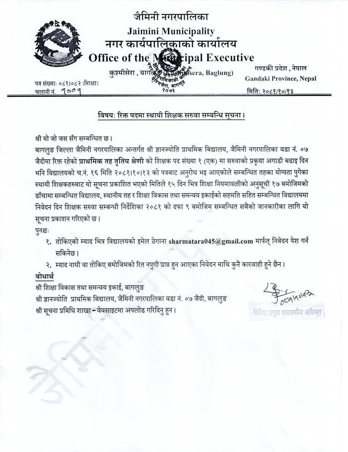 रिक्त पदमा स्थायी शिक्षक सरुवा सम्बन्धी सूचना।