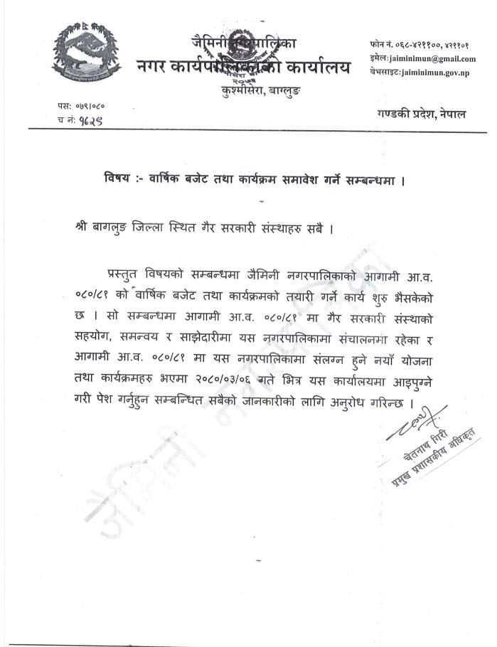 जैमिनी नगरपालिकाको योजनाहरुमा पारदर्शीता ?