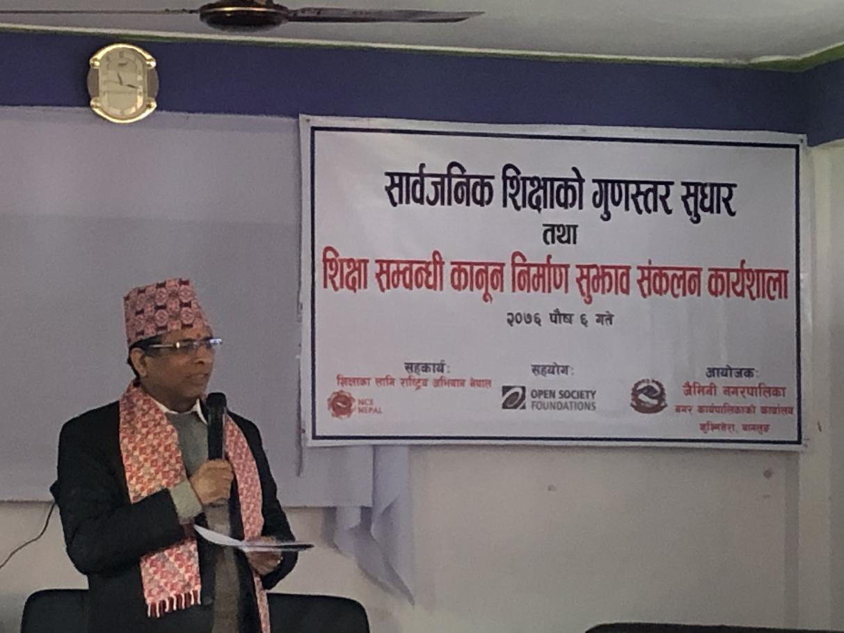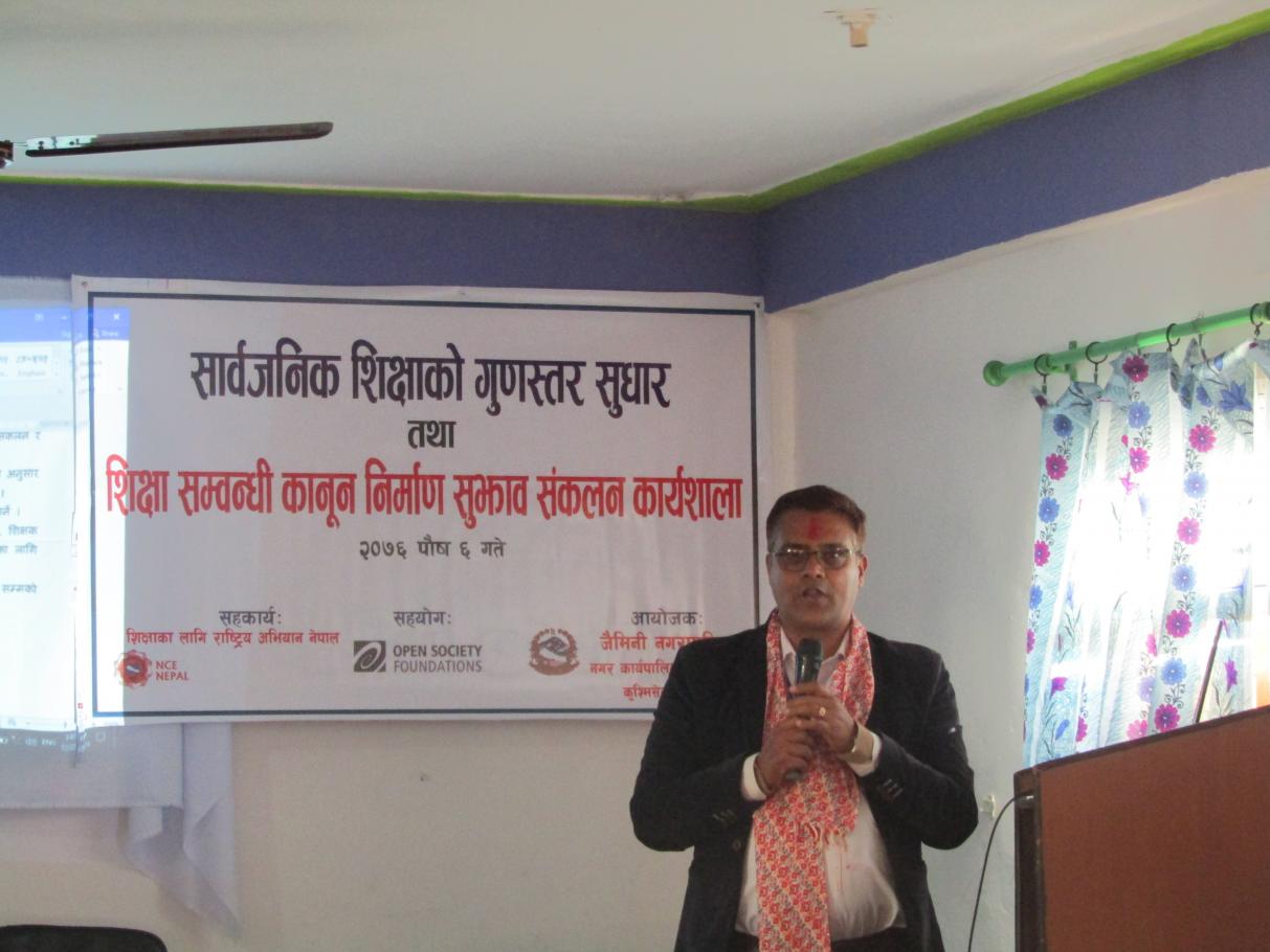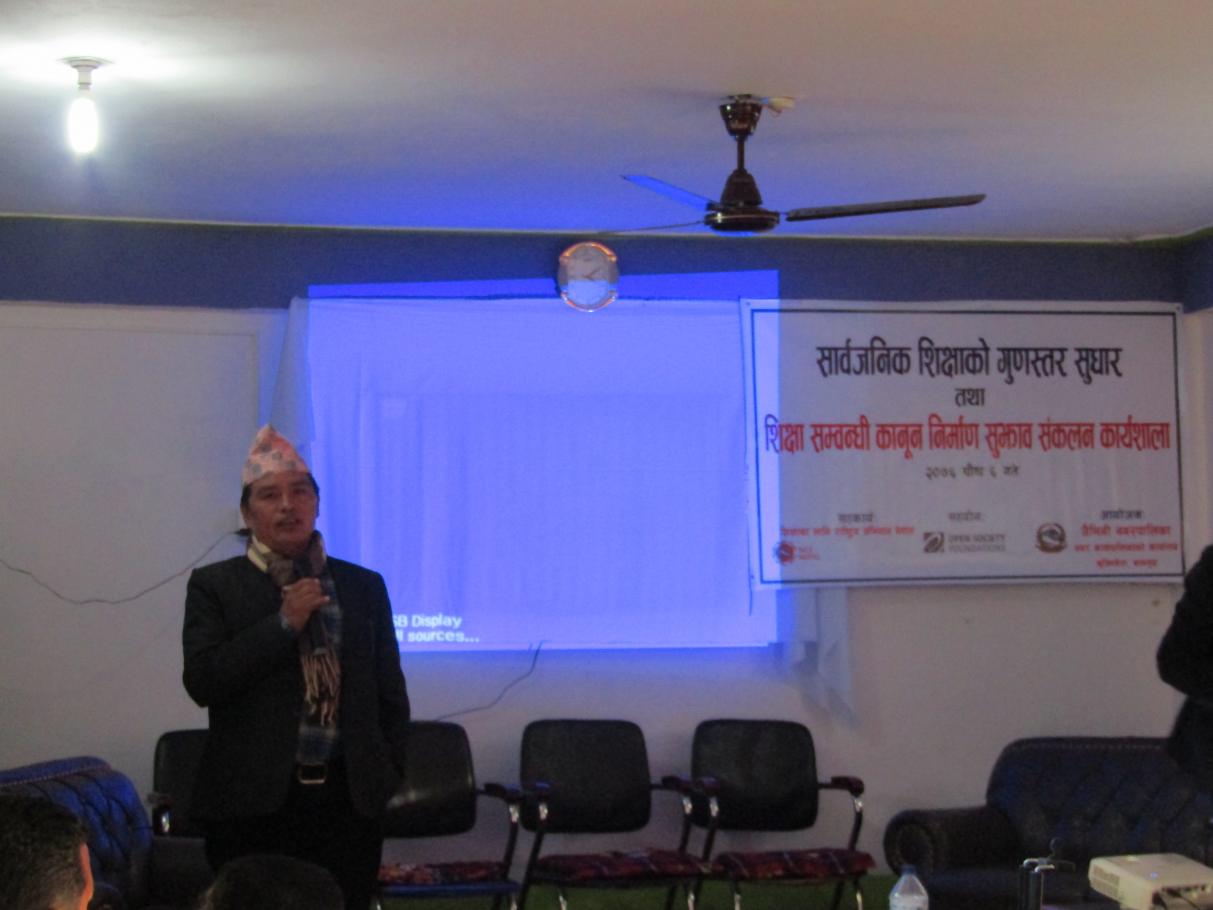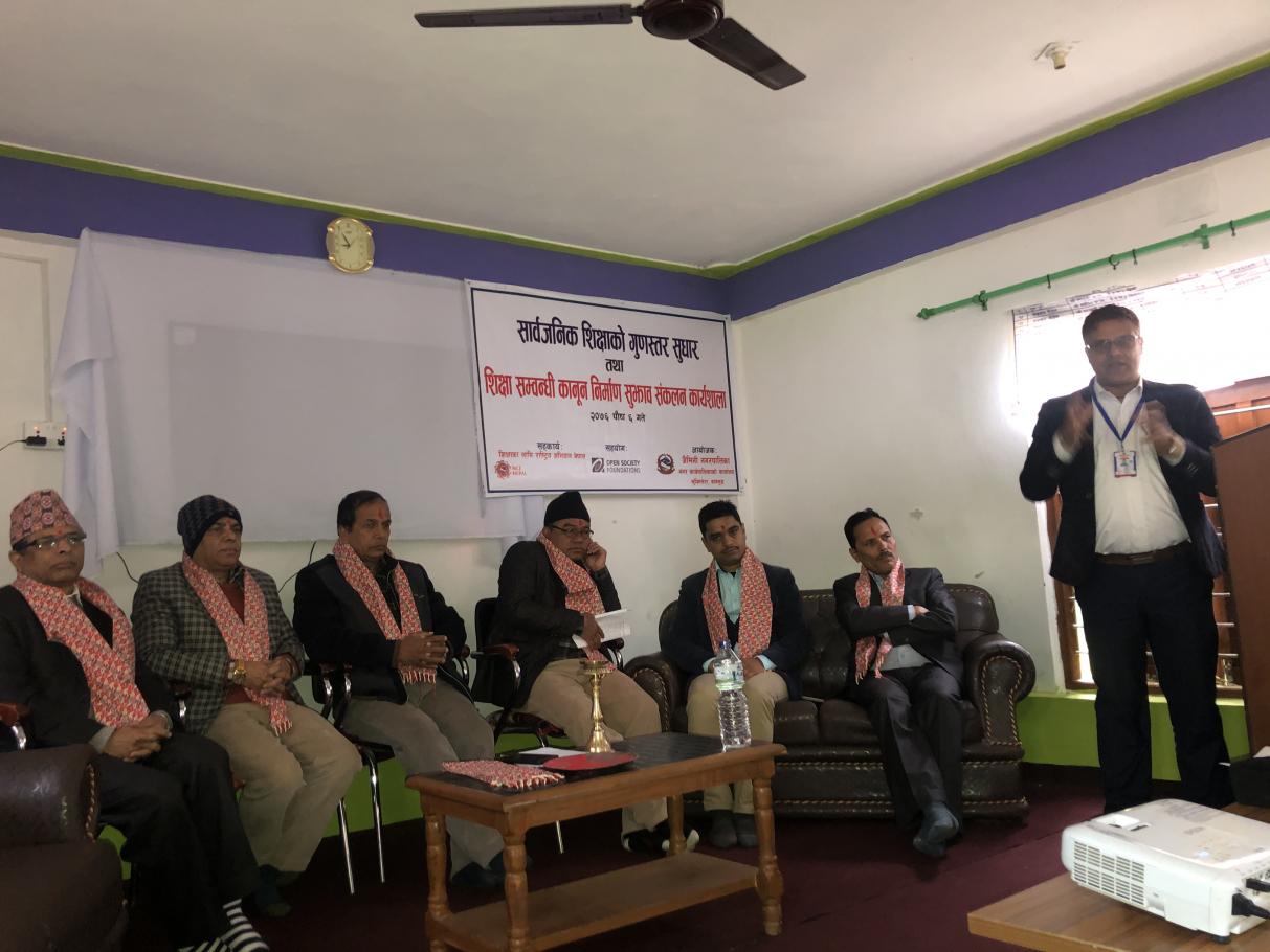 सार्बजनिक शिक्षाको गुणस्तर सुधार तथा शिक्षा सम्बन्धि कानुन निर्माण सुझाव संकलन सम्बन्धि १ दिने कार्यशाला ।
