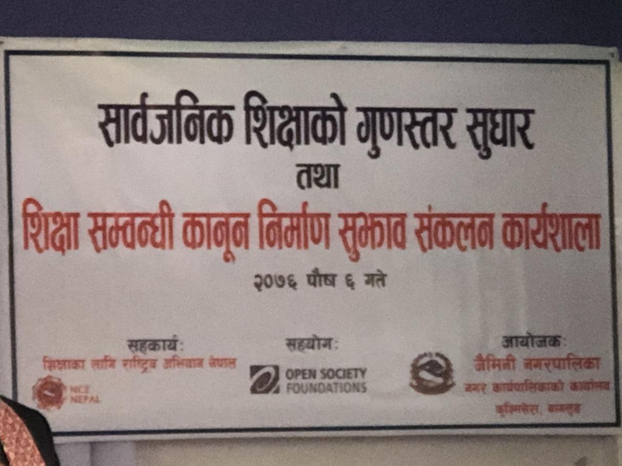 » सार्बजनिक शिक्षाको गुणस्तर सुधार तथा शिक्षा सम्बन्धि कानुन निर्माण सुझाव संकलन सम्बन्धि १ दिने कार्यशाला ।