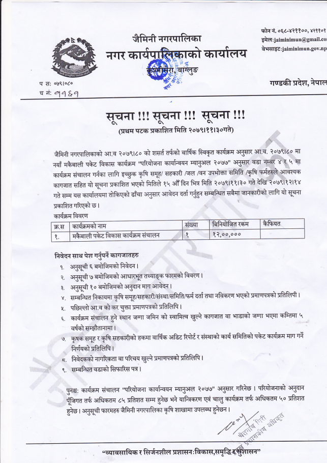 जैमिनी नगरपालिकाको योजनाहरुमा पारदर्शीता ?